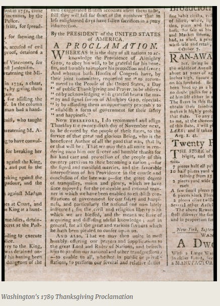 “Whereas it is the duty of all Nations to acknowledge the providence of Almighty God, to obey his will, to be grateful for his benefits, and humbly to implore his protection and favor—and whereas both Houses of Congress have by their joint Committee requested me “to recommend to the People of the United States a day of public thanksgiving and prayer to be observed by acknowledging with grateful hearts the many signal favors of Almighty God especially by affording them an opportunity peaceably to establish a form of government for their safety and happiness.”